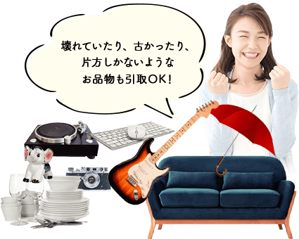 ひとつの品物が大きすぎたり、中程度の大きさものが多数あったり、細かいものでも持ち運べないほどたくさんあったりする場合はぜひ出張買取をご利用ください!