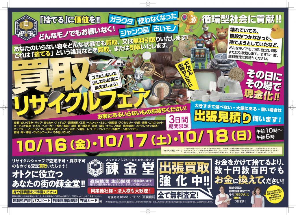 【終了】【錬金堂】生活雑貨・お家にあるものなんでも買取リサイクルフェア
