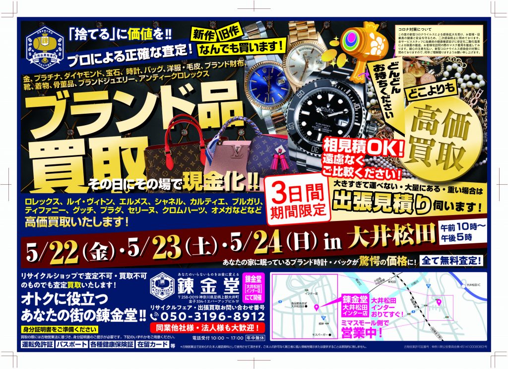 【終了】【錬金堂全店】ブランド品高価買取フェア