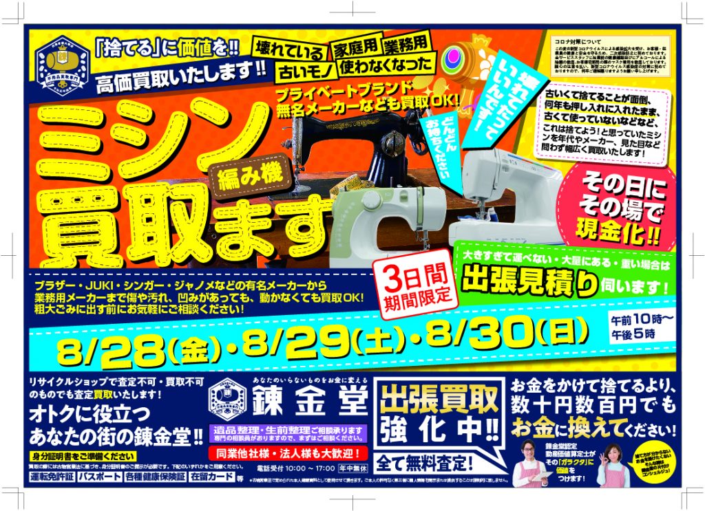 【終了】【錬金堂全店】ミシン買取フェア