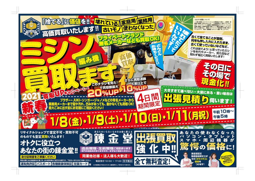 【終了】【錬金堂全店】ミシン高価買取フェア|新春買取UPキャンペーン!