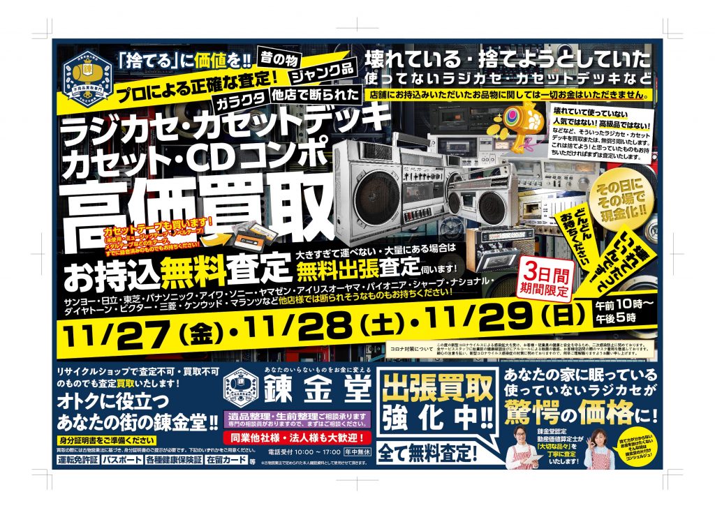 【終了】ラジカセ・カセットデッキ・カセットコンポ・CDコンポ高価買取フェア