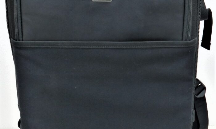 表面生地には撥水加工が施され、背面にはファスナーポケットが付属しています。