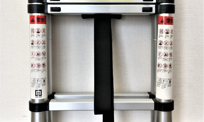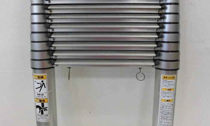 納時はコンパクトになり、使用時には必要な長さに調整できるはしごです。